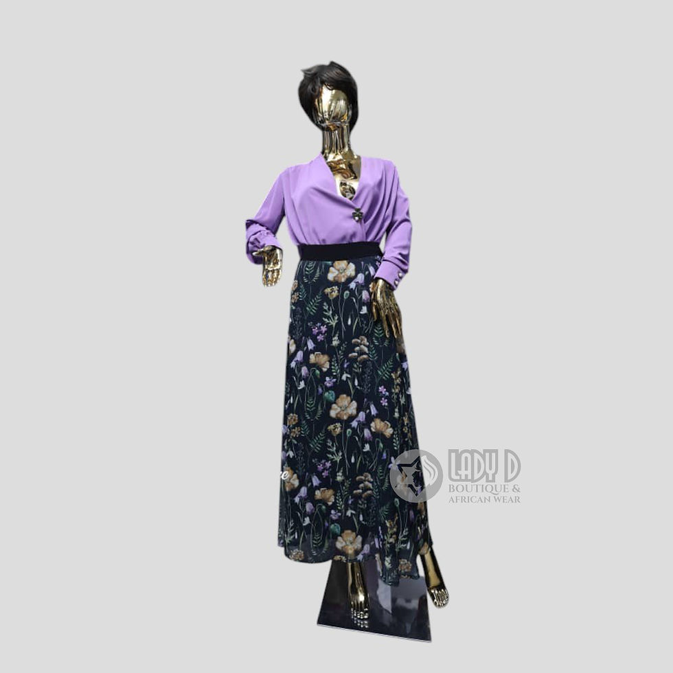 Sleeveless Purple Top[Blouse] + Floral Pants